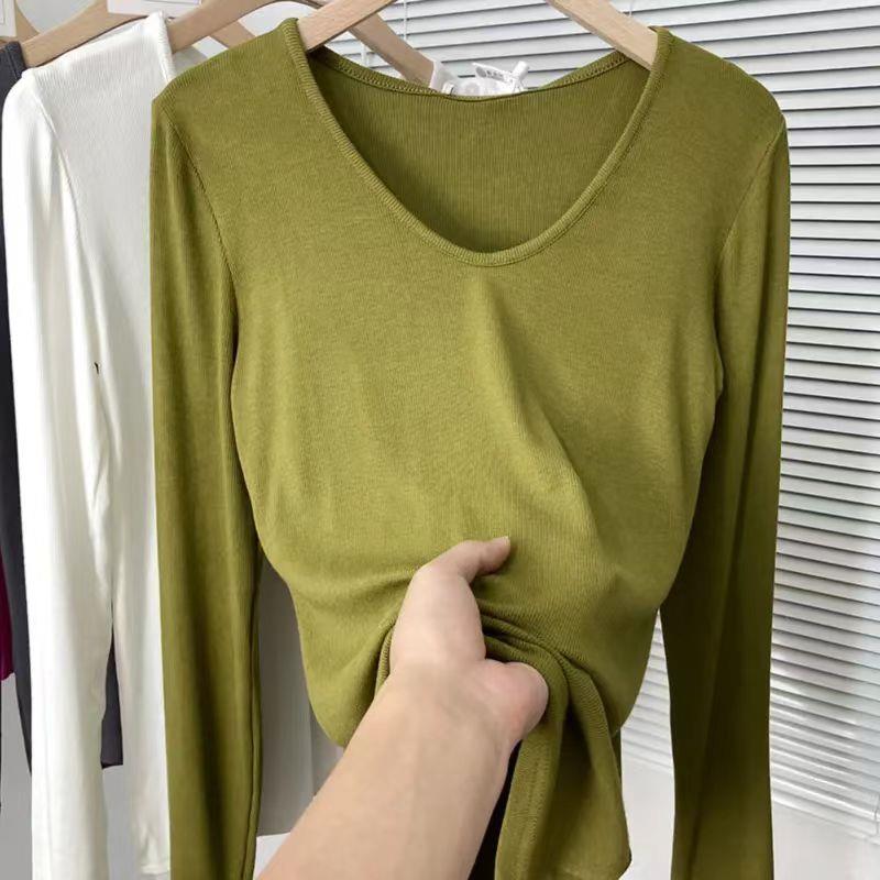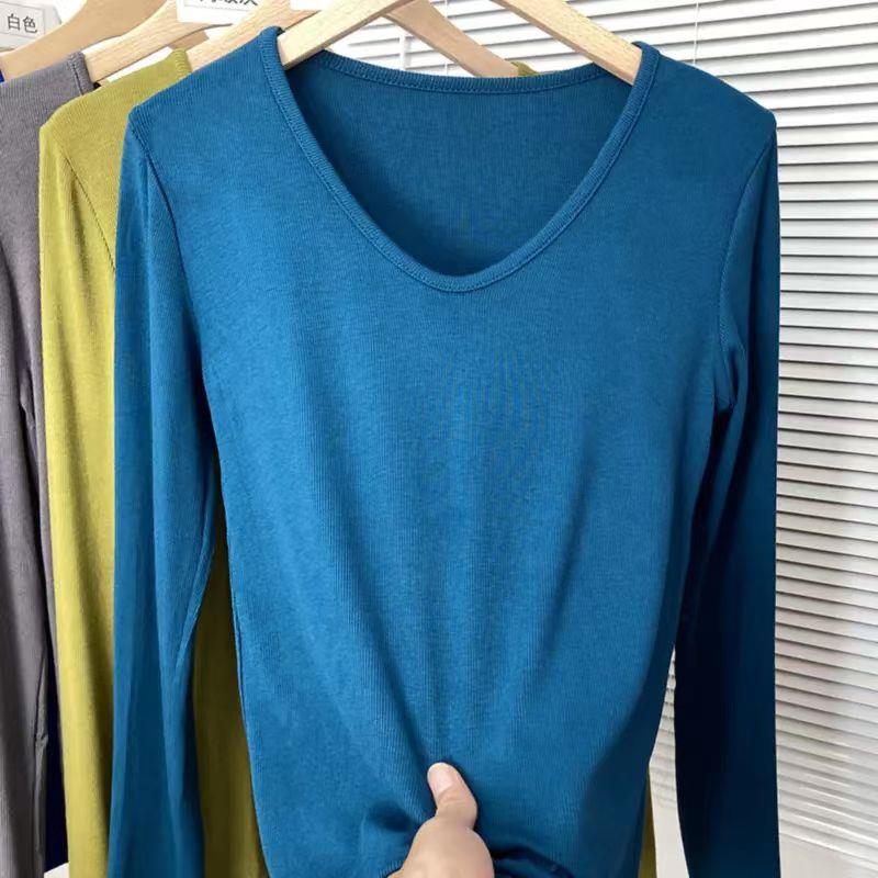 内搭打底衫 秋季 套头T恤洋气时尚 色显瘦V领气质百搭长袖 1015h 新款
