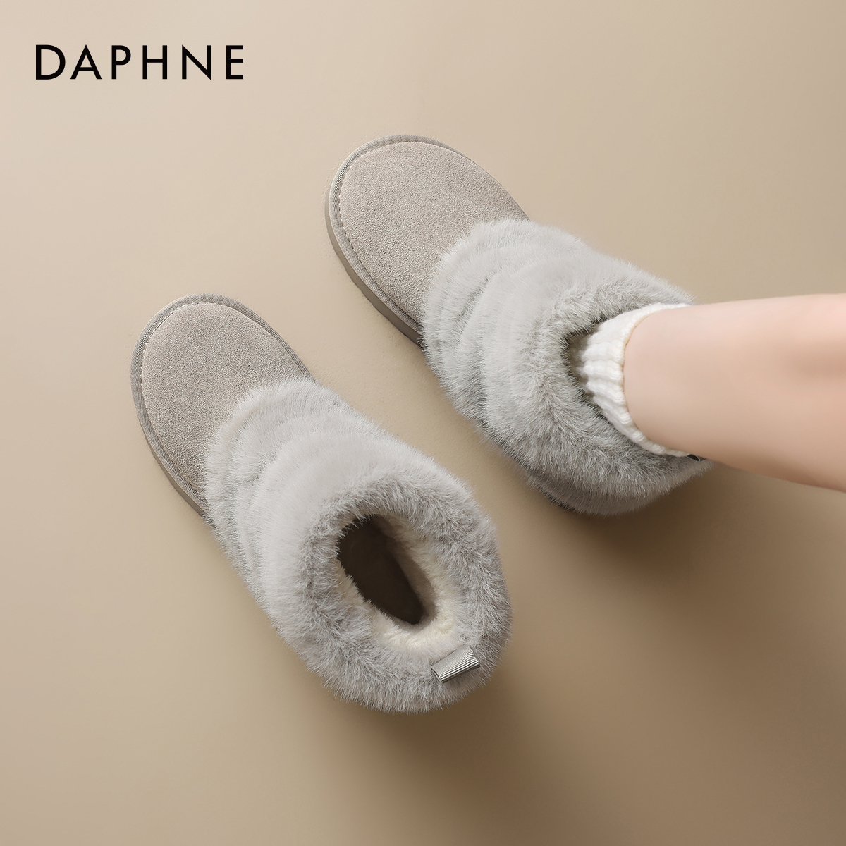 管靴 裤 达芙妮毛毛雪地靴女2025秋冬新款 加绒加厚短靴东北保暖棉鞋