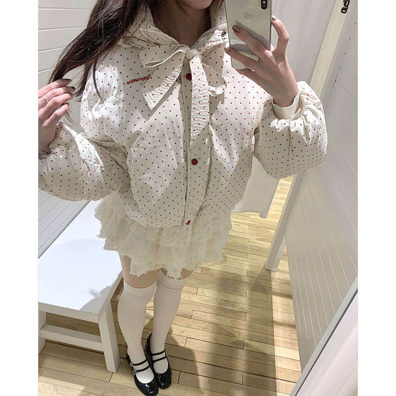 韩系甜美风波点立领羽绒棉服女冬季 巨好看超火小个子保暖棉袄外套