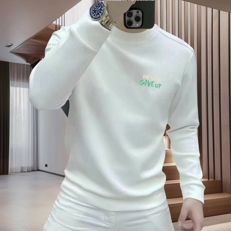 2025秋冬季 美式 打底衫 字母印花休闲长袖 潮牌加绒加厚圆领卫衣男士