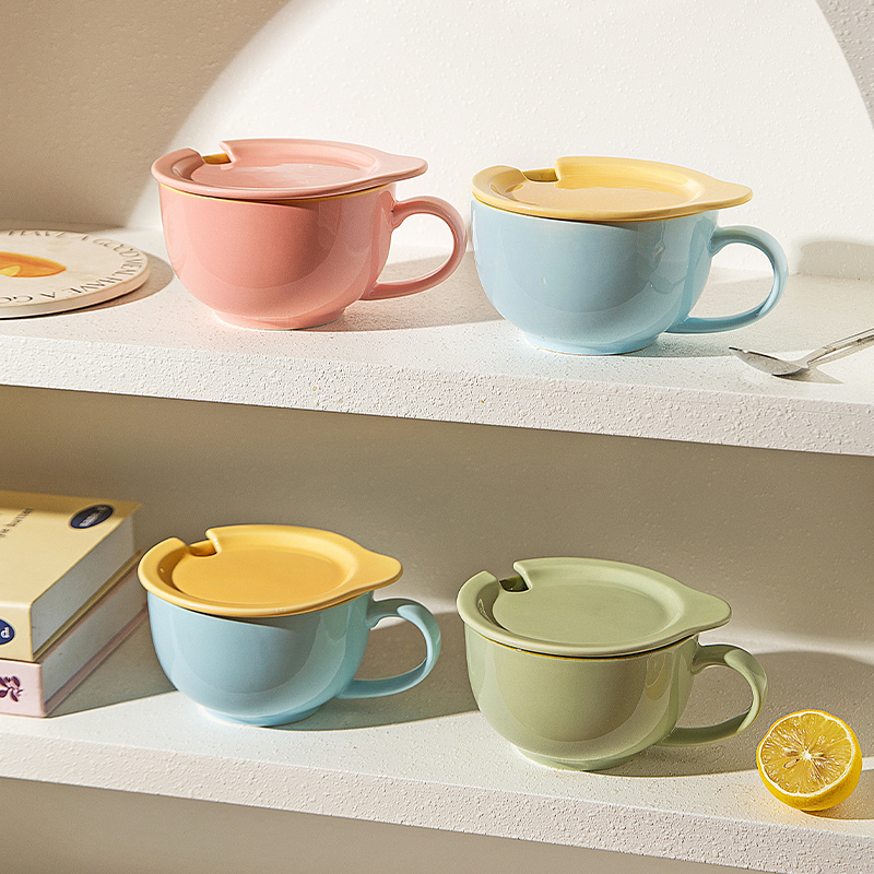 摩登主妇早餐杯陶瓷马克杯带盖勺大容量杯子家用水杯咖啡杯燕麦杯