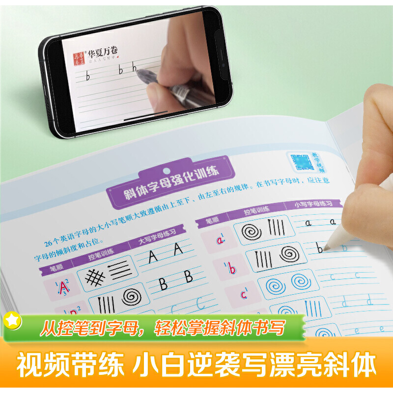 华夏万卷2025秋初中生七八年级上册意大利英语斜体同步字帖初中英语同步练习字帖硬笔书法临摹练习本七上八上人教版 英文含字母单词