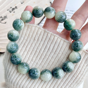 紫葡萄白玉菩提根盘玩手串六字箴言圆珠菩提子根男女绕指柔文玩