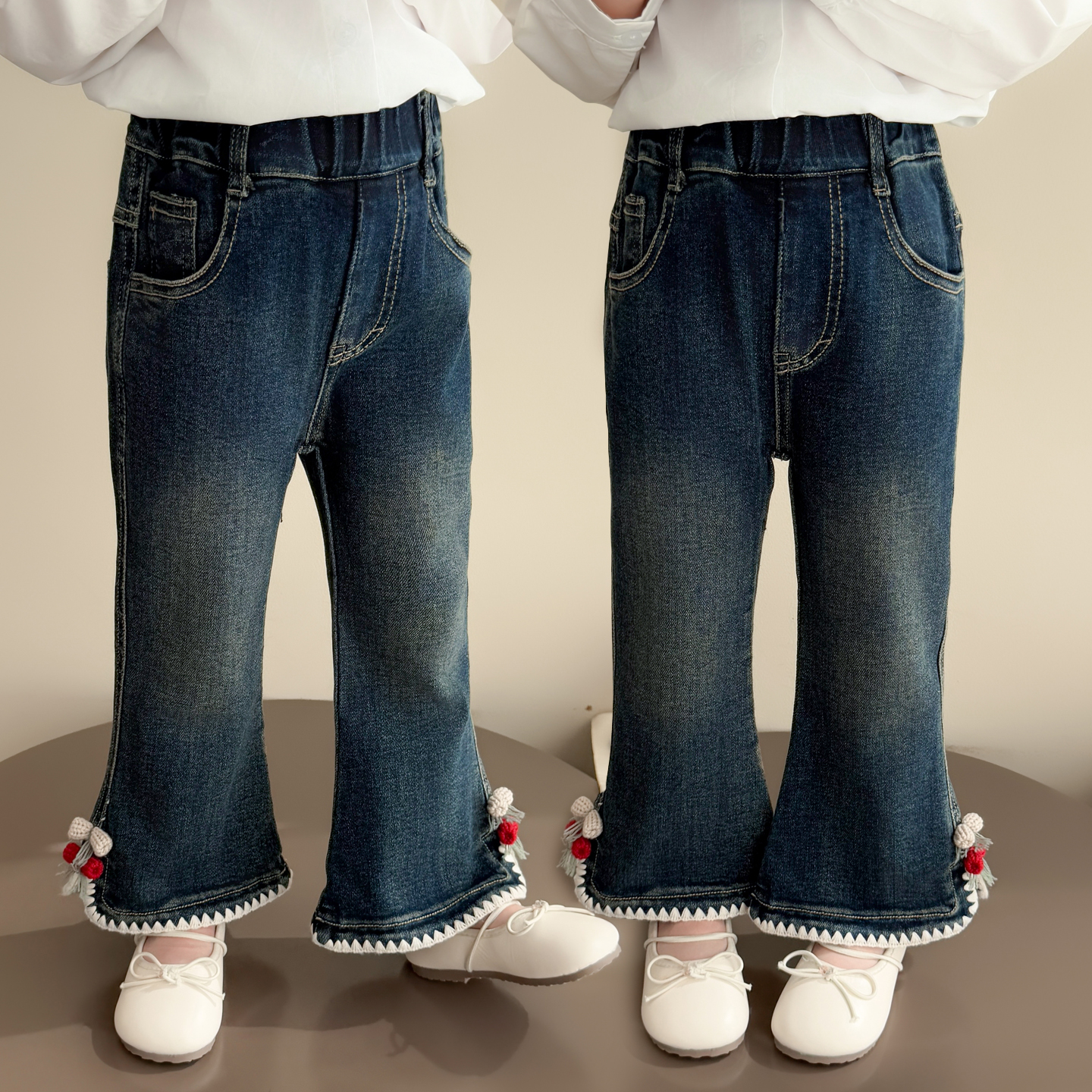 春秋2025新款 子外穿儿童喇叭裤 韩版 洋气宝宝裤 潮 秋季 女童牛仔裤