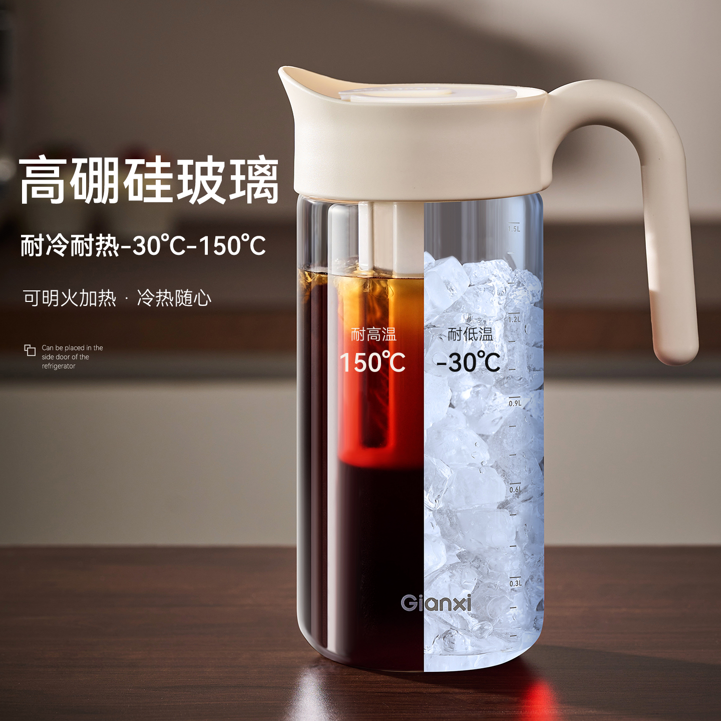 捷安玺冰箱冷水壶家用高硼硅玻璃凉水壶耐高温冷泡壶大容量冷萃壶