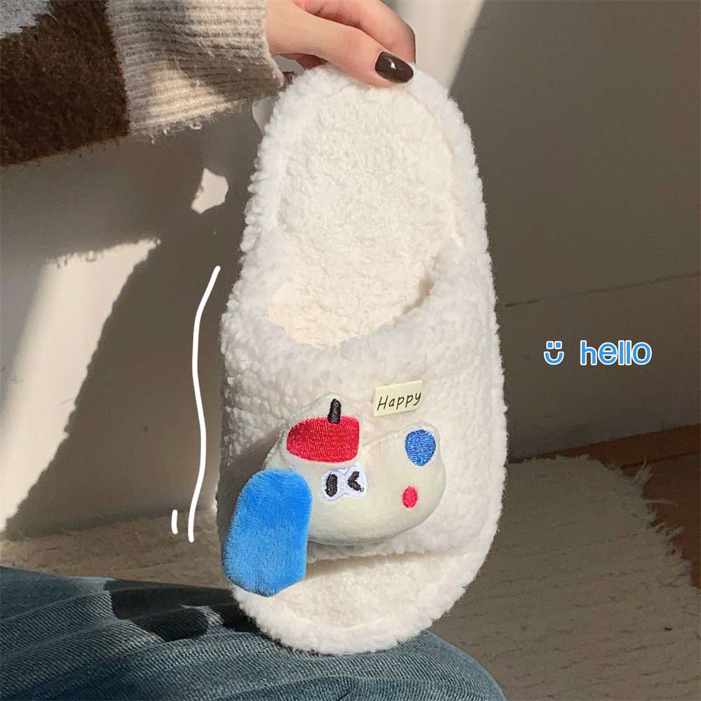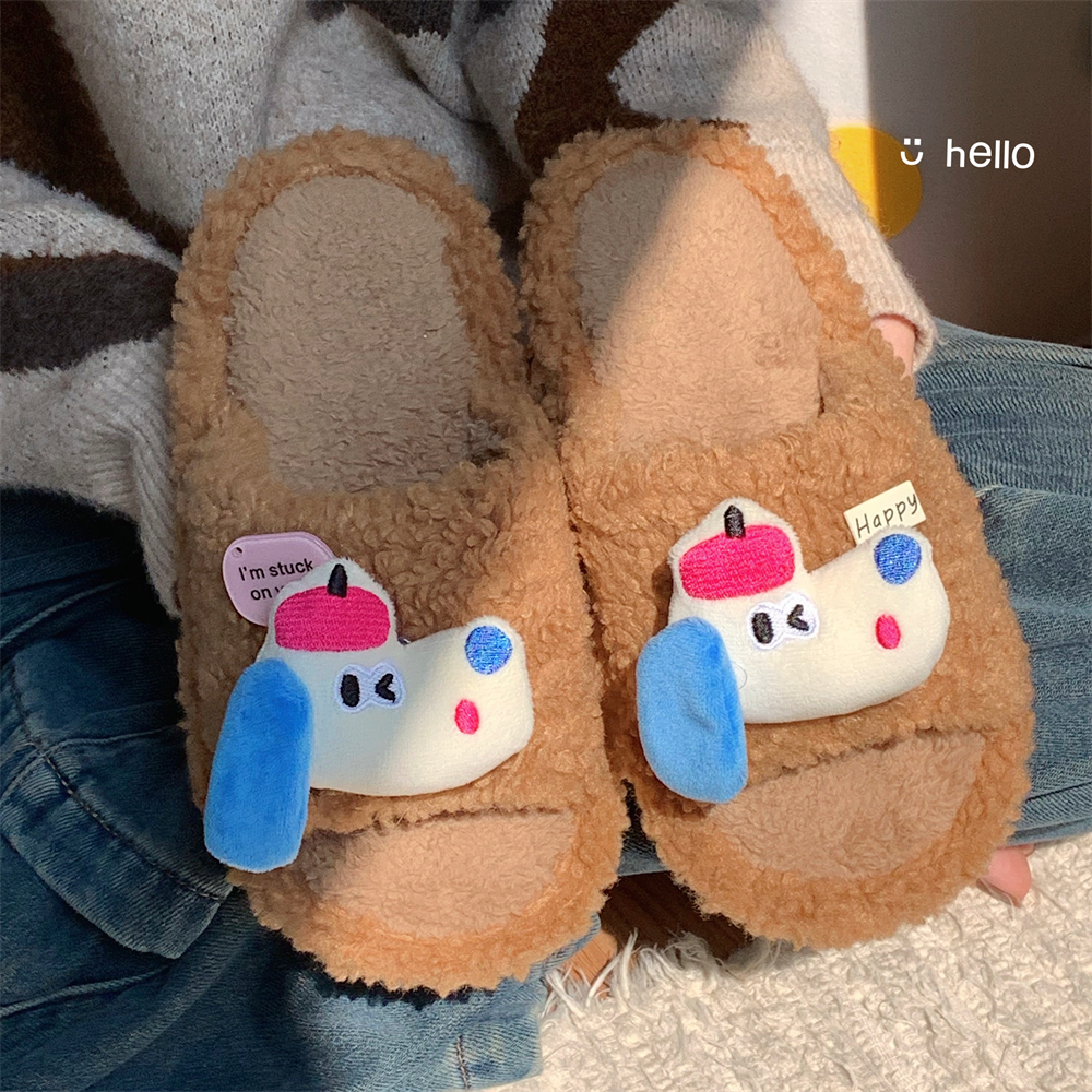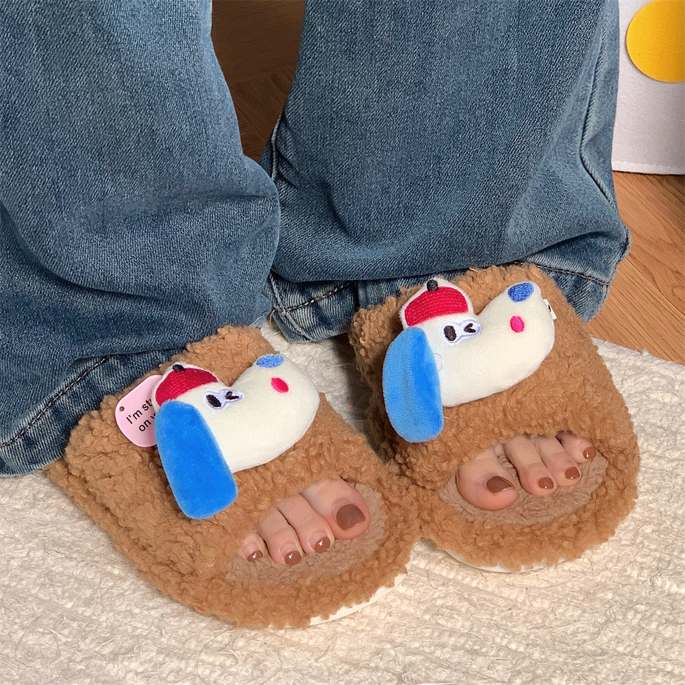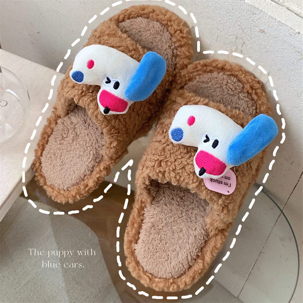 秋冬 蓝耳狗狗防滑棉拖鞋 女士ins风个性 居家保暖舒适一字毛毛拖鞋