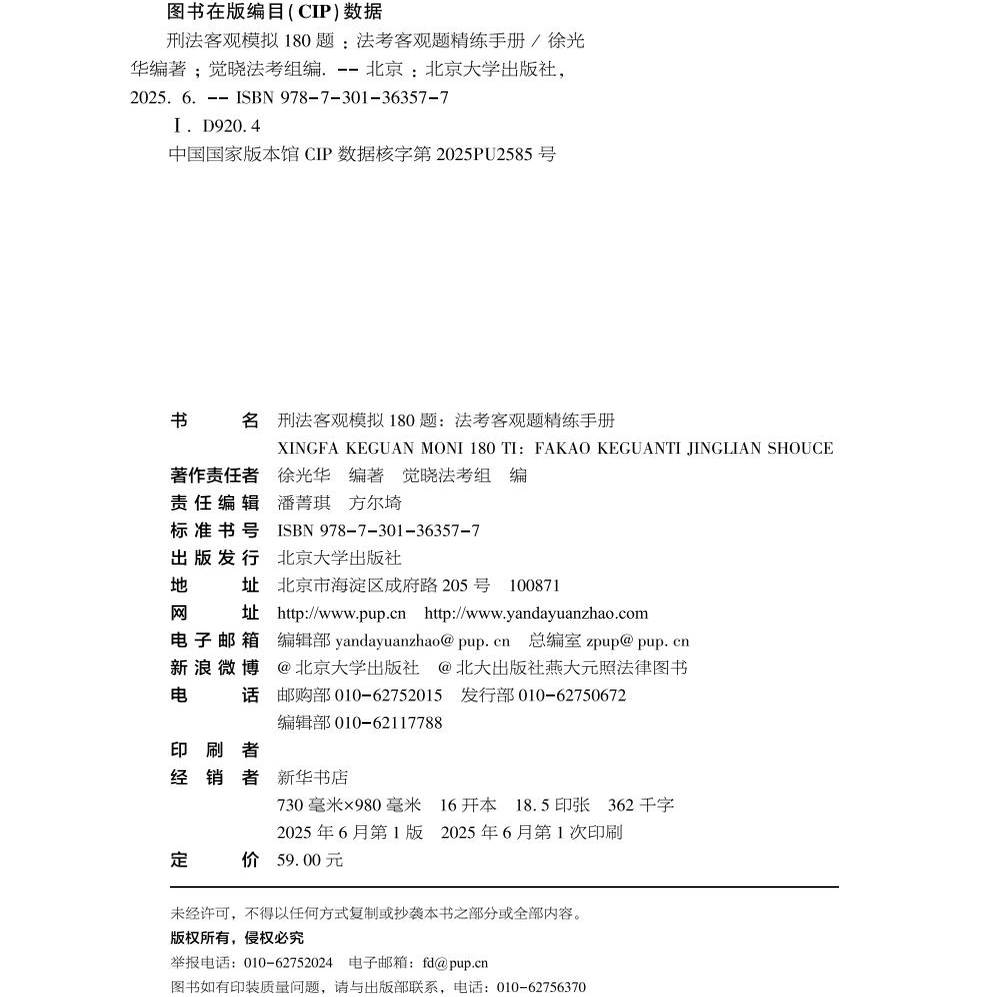 刑法客观模拟180题法考客观题精练手册 北京大学出版 徐光华觉晓法考组 刑法考点 社9787301363577 法考大纲与新法规 2025新版