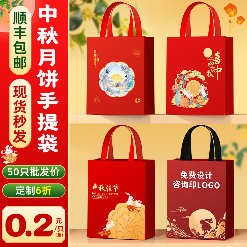 月饼手提袋包装 月饼礼袋无纺布袋 袋中秋节礼品袋手提袋2025年新款