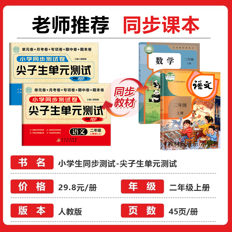 测试冲刺100分语文数学人教版 期中 小学2年级上学期同步测试卷全套单元 专项 期末真题试卷RJ 月考 二年级上册尖子生单元