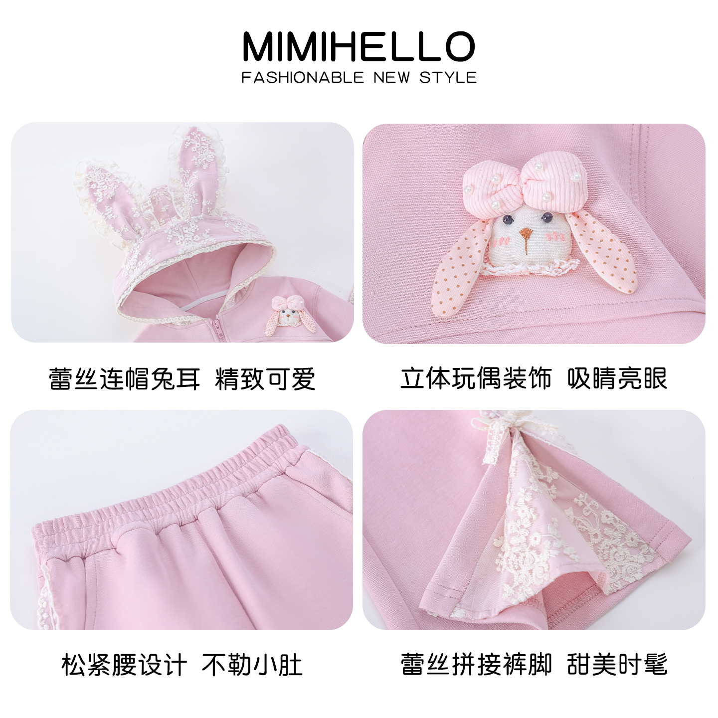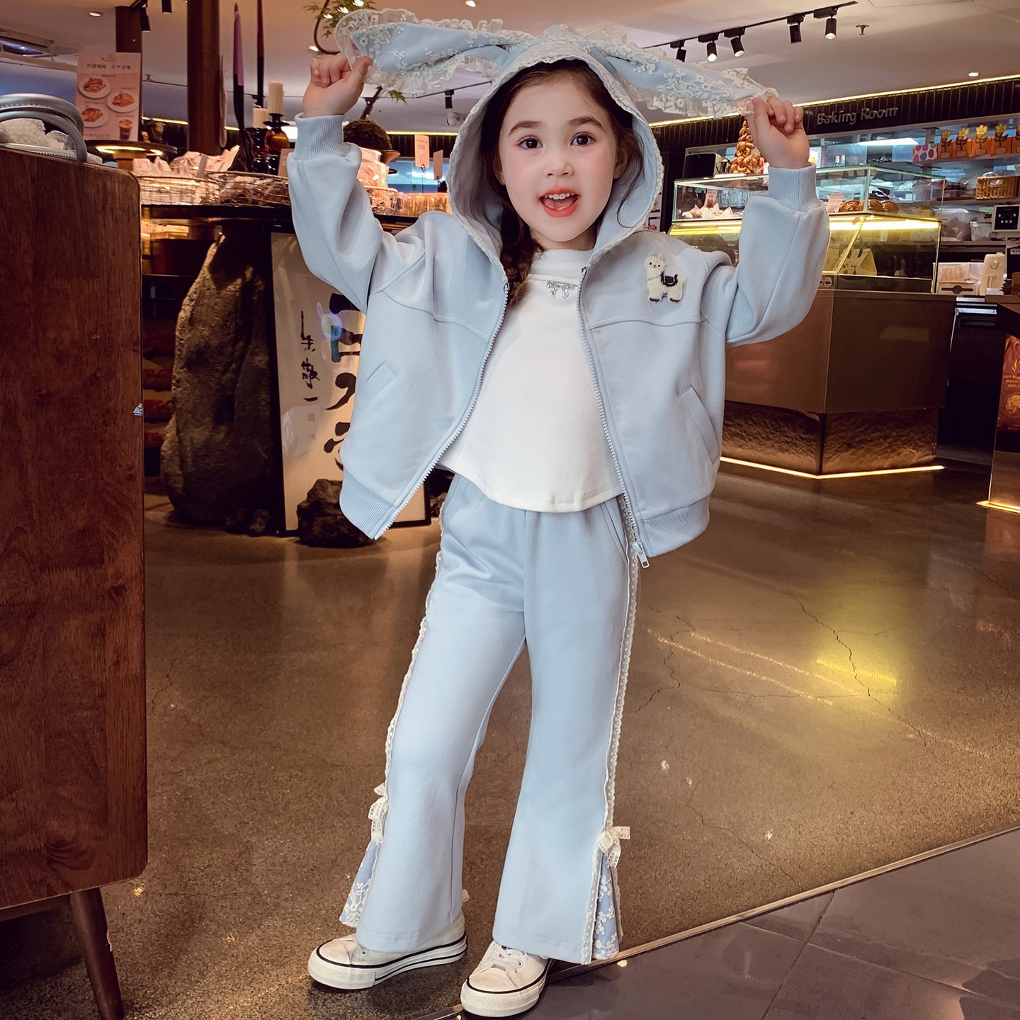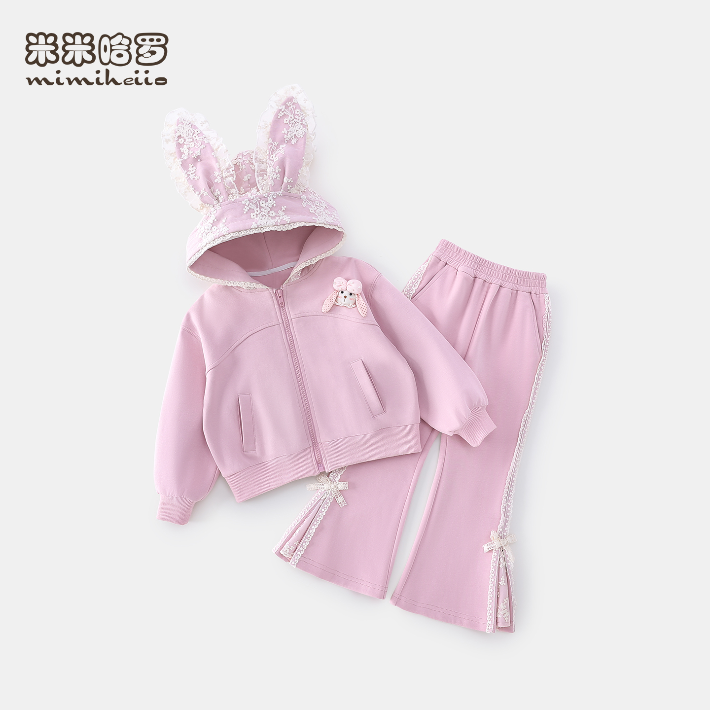 套装 女童套装 两件套女宝秋装 宽松兔耳连帽卫衣休闲裤 春秋儿童韩版
