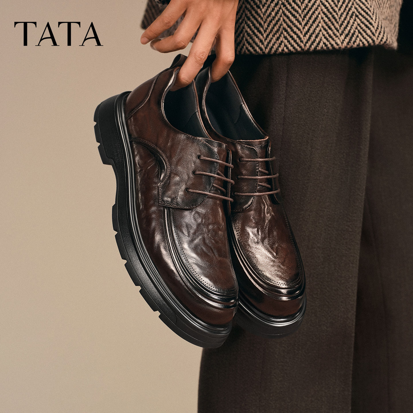 2025秋季 TATA他她男鞋 新款 百搭休闲皮鞋 子 黑色商务鞋 双11预售