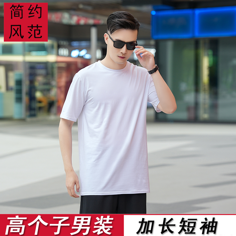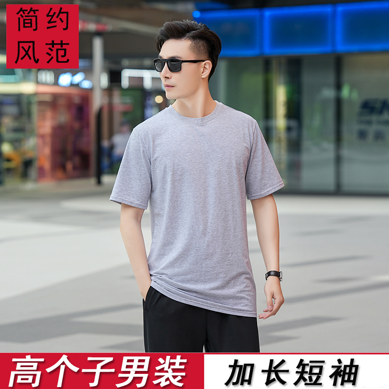 夏季 T恤 薄款 圆领纯色宽松大码 2300 瘦高个子加长款 莱卡棉汗衫 短袖