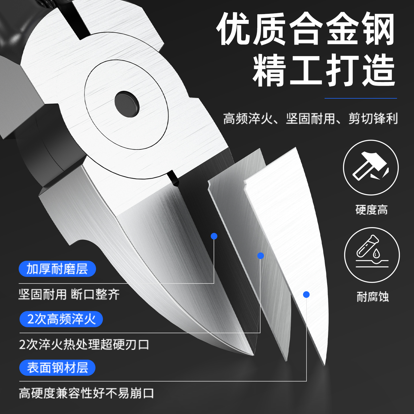 锐能水口钳电工专用工业级超硬斜口钳斜嘴偏口钳子高硬度模型剪