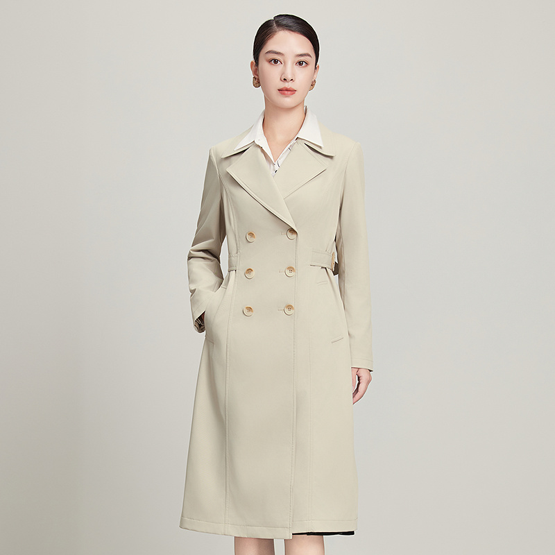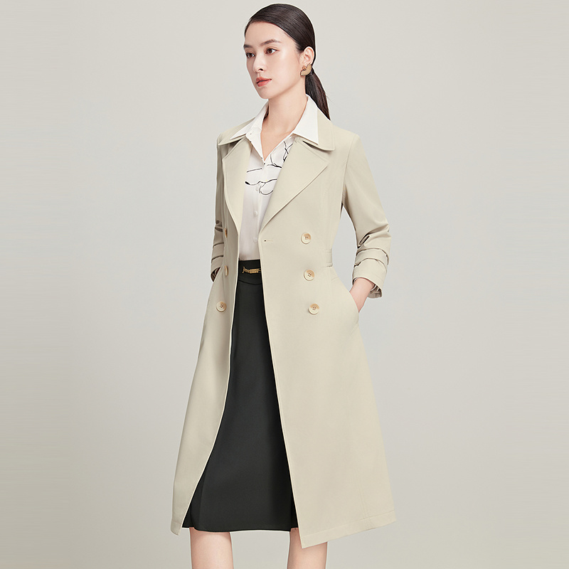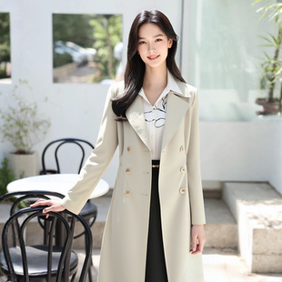 风衣小个子外套休闲上衣黑色 风衣外套女中长款 嘉茱莉2025春季 新款