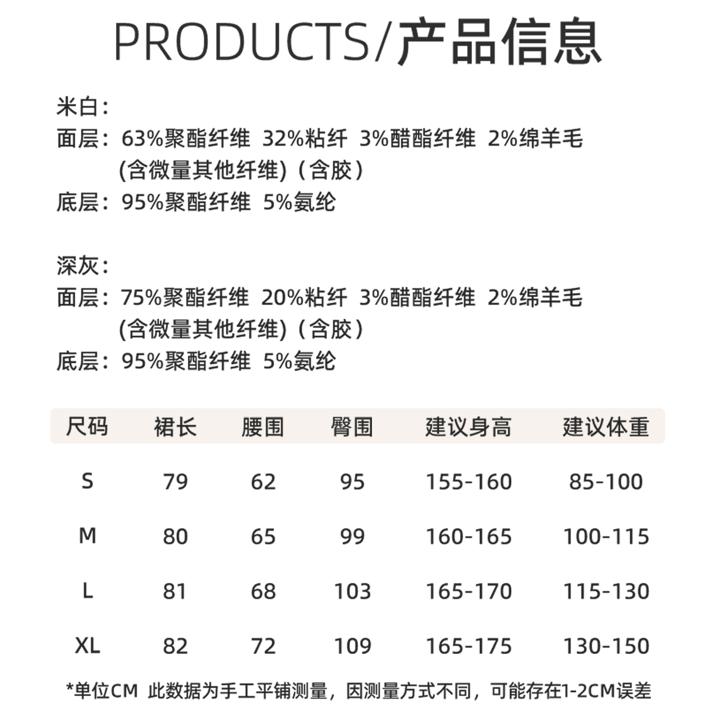 裙子后开叉长裙S 初秋季 one more白色羊毛醋酸a字半身裙女2025新款
