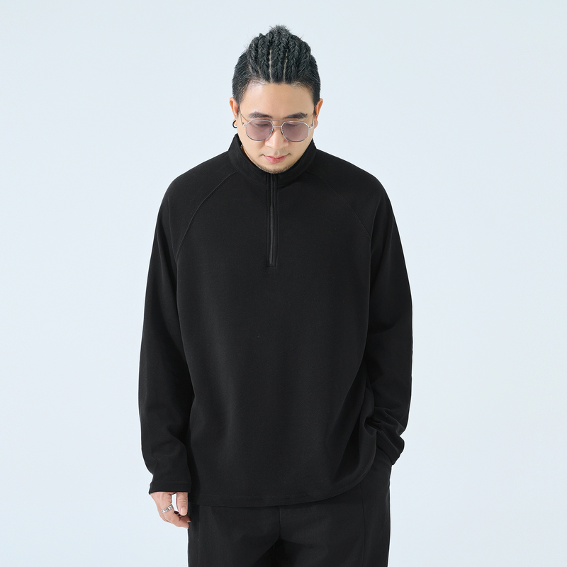 撞色拼接宽松户外冲锋衣内胆 半高领拉链德绒T恤男士 半墨大码 男装