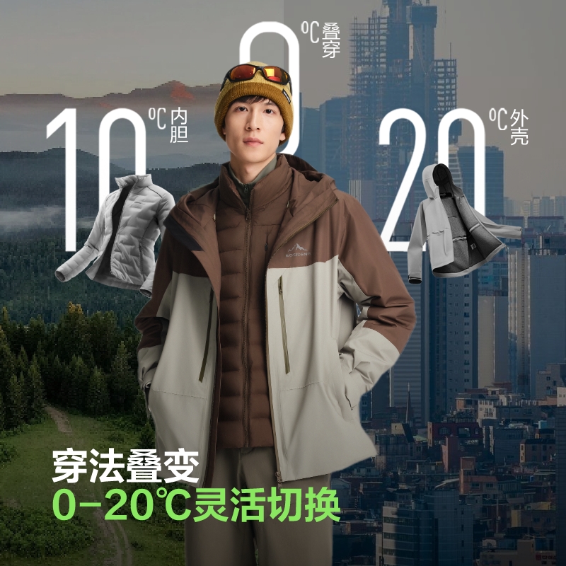 男士 波司登25秋新款 冲锋衣鹅绒服防大雨羽绒服三合一户外 叠变