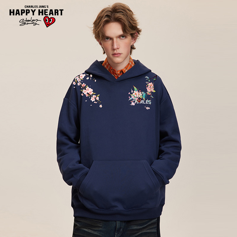 宽松休闲长袖 美式 情侣外套 花卉印花连帽卫衣男春秋季 查尔斯桃心