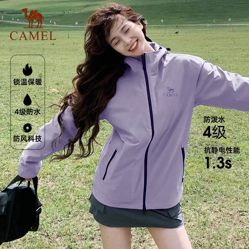 骆驼户外冲锋软壳衣女士2025新款 外套防风连帽夹克运动服男 春秋季