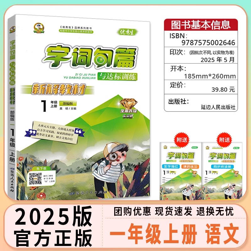2025秋新版 字词句篇新解教材小学教辅1年级上学期同步阅读课后练习解析辅导书 优秀生字词句篇与达标训练一年级语文上册人教部编版