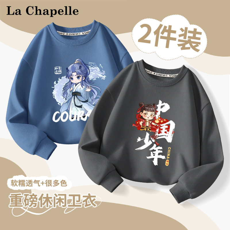 拉夏贝尔男童卫衣2025新款 t恤男孩哪吒敖丙上衣 儿童国风运动长袖