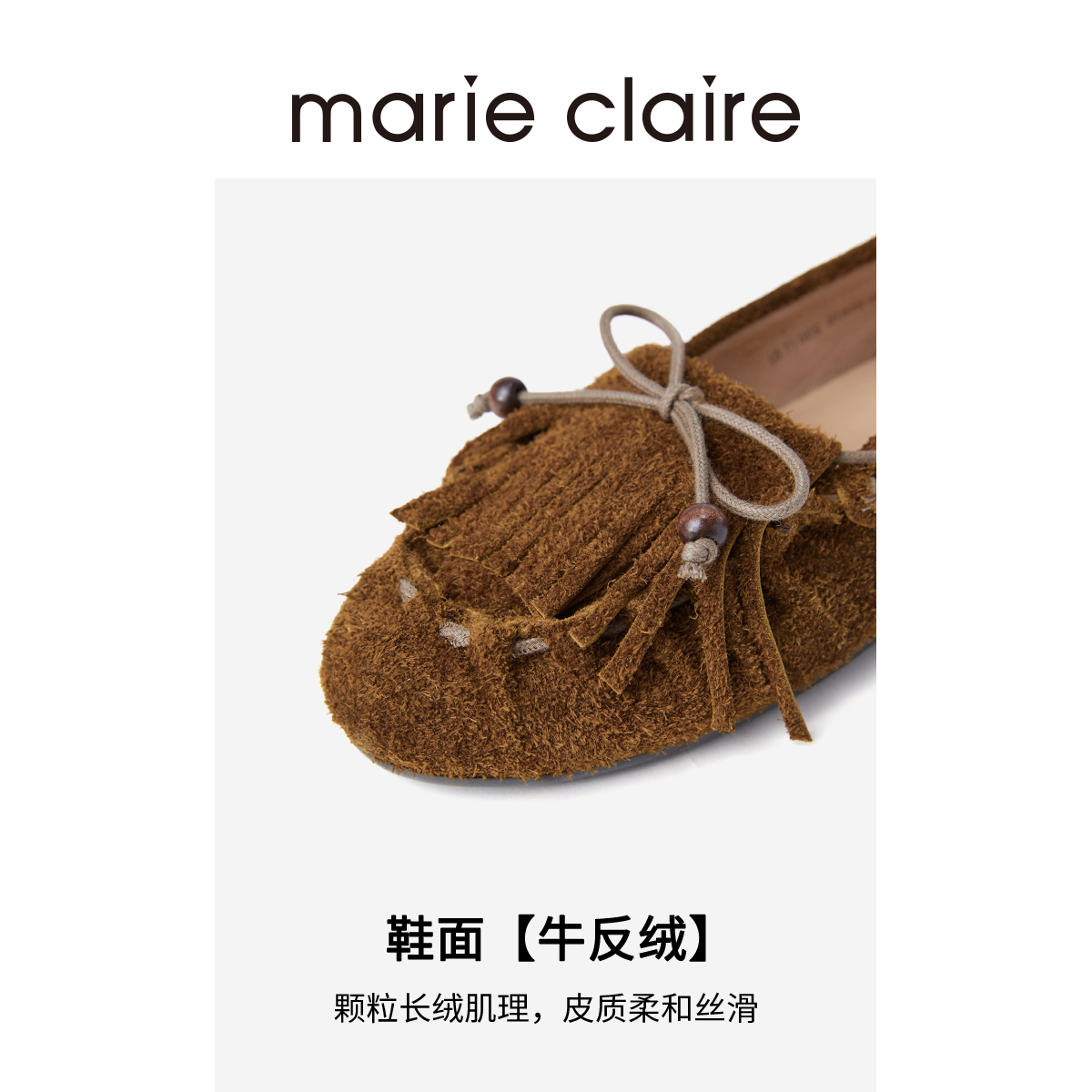 marieclaire女鞋 MC女鞋 2025秋皮鞋 焦糖棕流苏乐福鞋 boho风帆船鞋