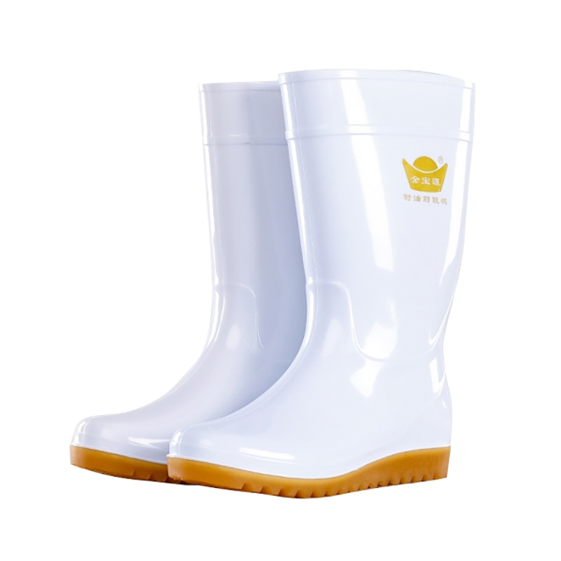 防滑食品水靴劳保雨靴胶鞋 平底雨鞋 白色中高筒牛筋耐磨耐酸碱水鞋