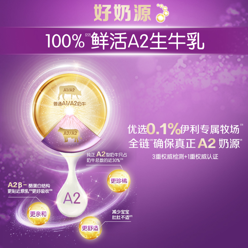 伊利金领冠菁护2段6 1罐 12个月婴幼儿A2乳铁蛋白奶粉800g