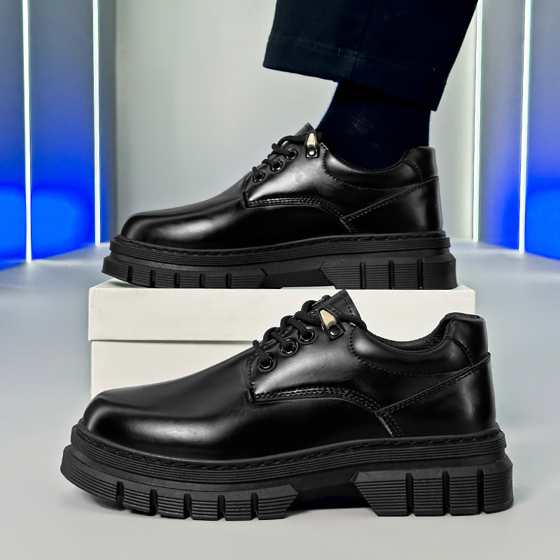 2025新款 马丁潮鞋 秋季 青少年厚底工装 黑色英伦风商务休闲皮鞋 男鞋