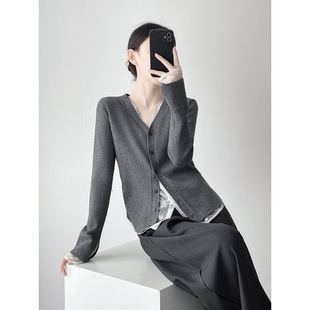 内搭高级感chic别致上衣 女2025早秋新款 法式 蕾丝边假两件针织开衫