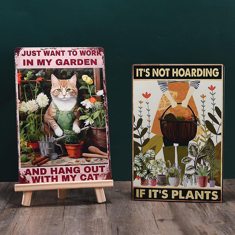复古花卉人物铁皮画花园田园艺花店阳台户外墙面做旧装 饰布置挂件