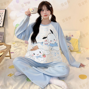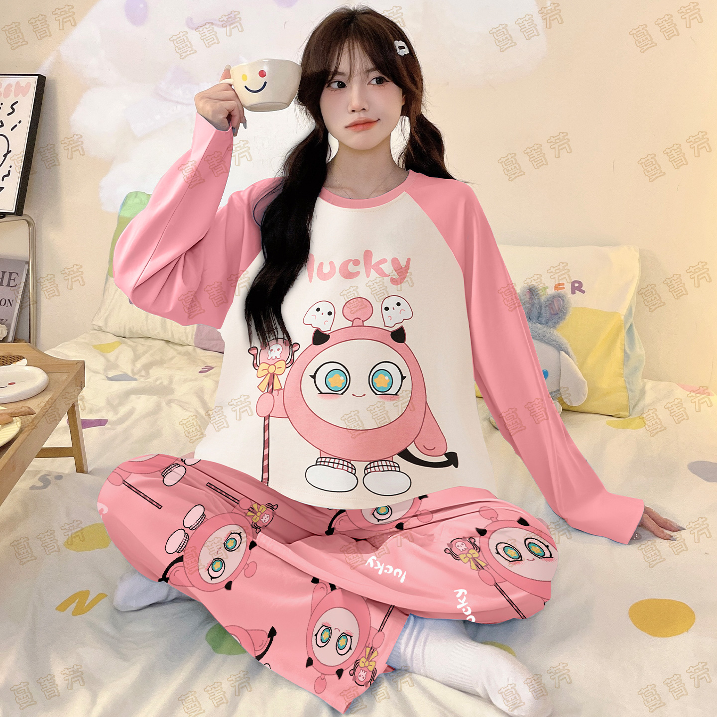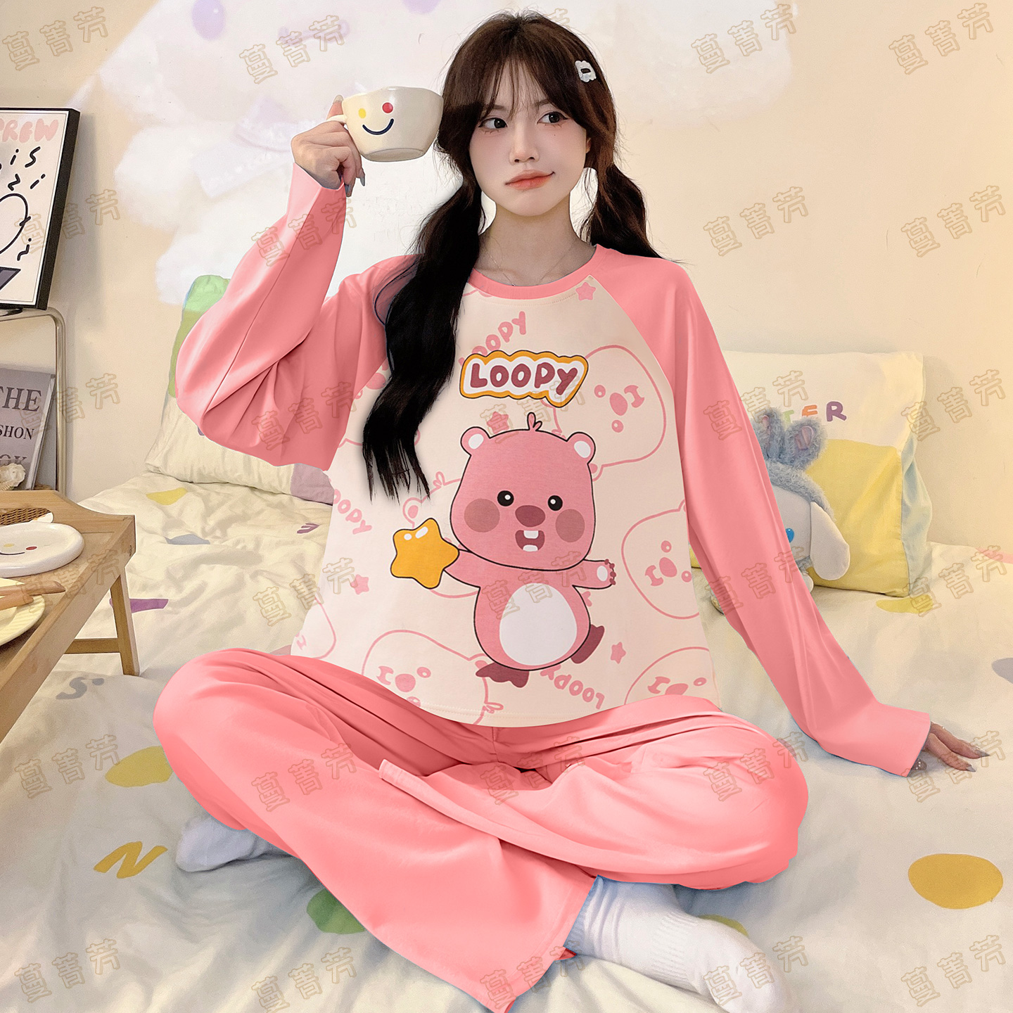 儿童宝宝家居服中大童亲子装 黄油小熊女童睡衣母女春秋季 纯棉长袖