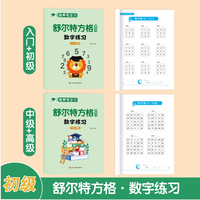 舒尔特方格游戏书古诗篇数字练习色彩干扰图中级高级练习册儿童思维逻辑开发训练注意力培养益智教材高级篇初学者益智游戏