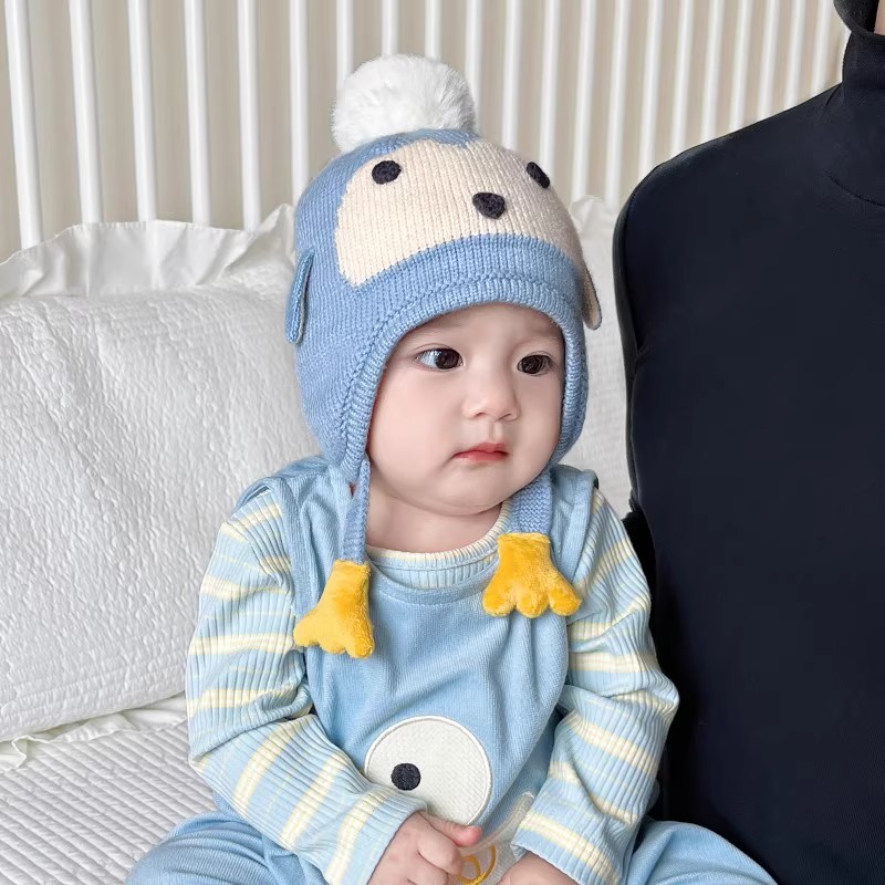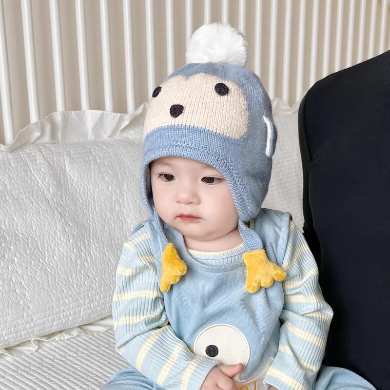 婴儿帽子秋冬季 超萌卡通企鹅护耳帽男童女宝宝冬天加厚保暖毛线帽