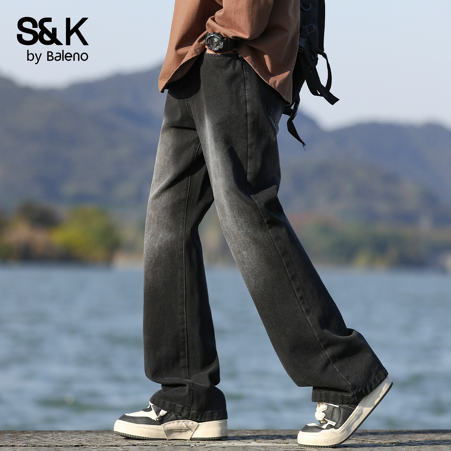 潮流百搭复古水洗休闲牛仔裤 男高级感穿搭阔腿裤 宽松牛仔裤 春秋季