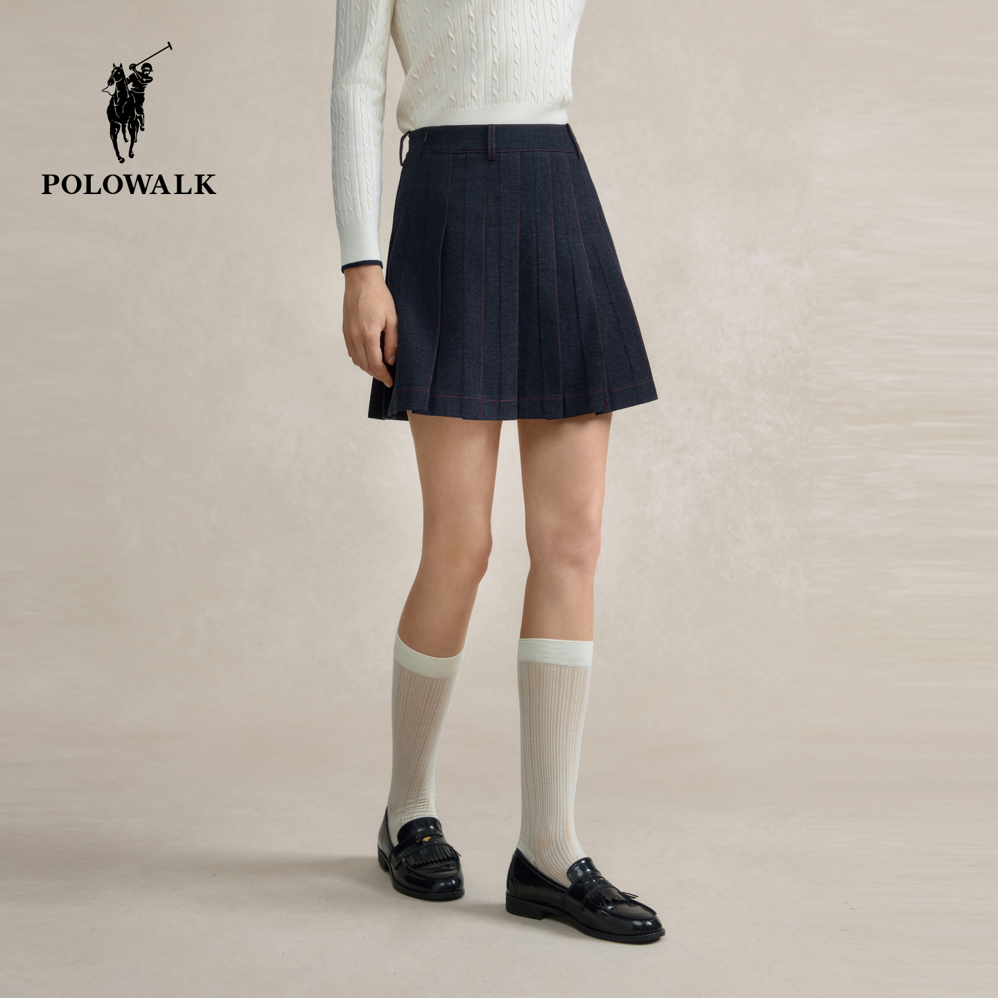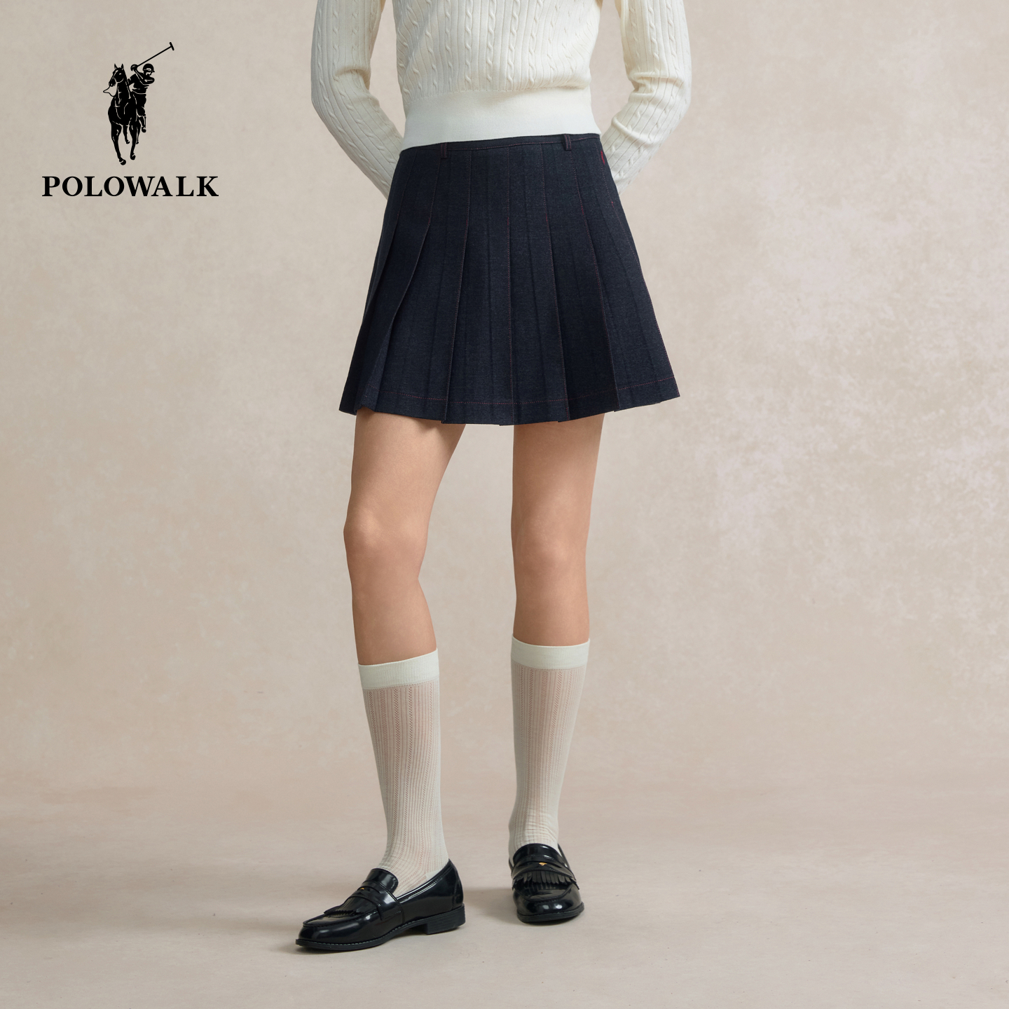 学院风A字百褶裙韩版 新品 短裙 半裙2025秋冬裤 POLOWALK女式