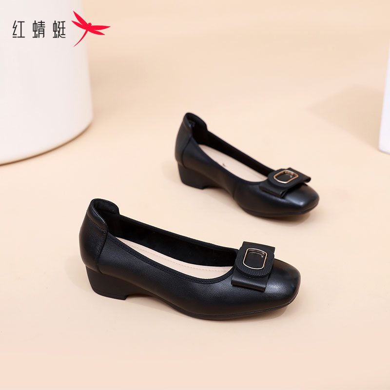 仙女风瓢鞋 秋季 浅口百搭中跟奶奶鞋 大码 真皮单鞋 女鞋 粗跟2025新款