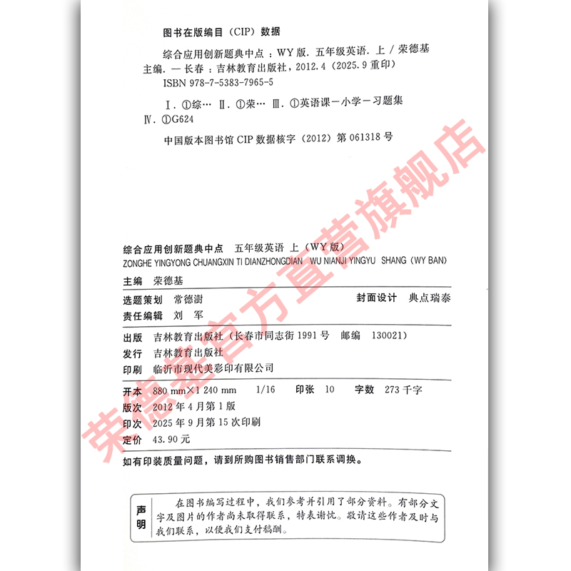 北京专用 典中点五年级上册英语外研版 同步练习册 新版 2025秋季
