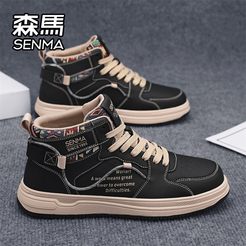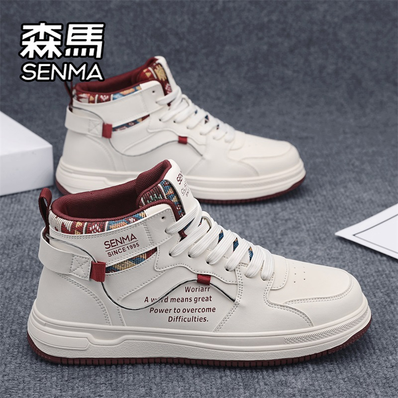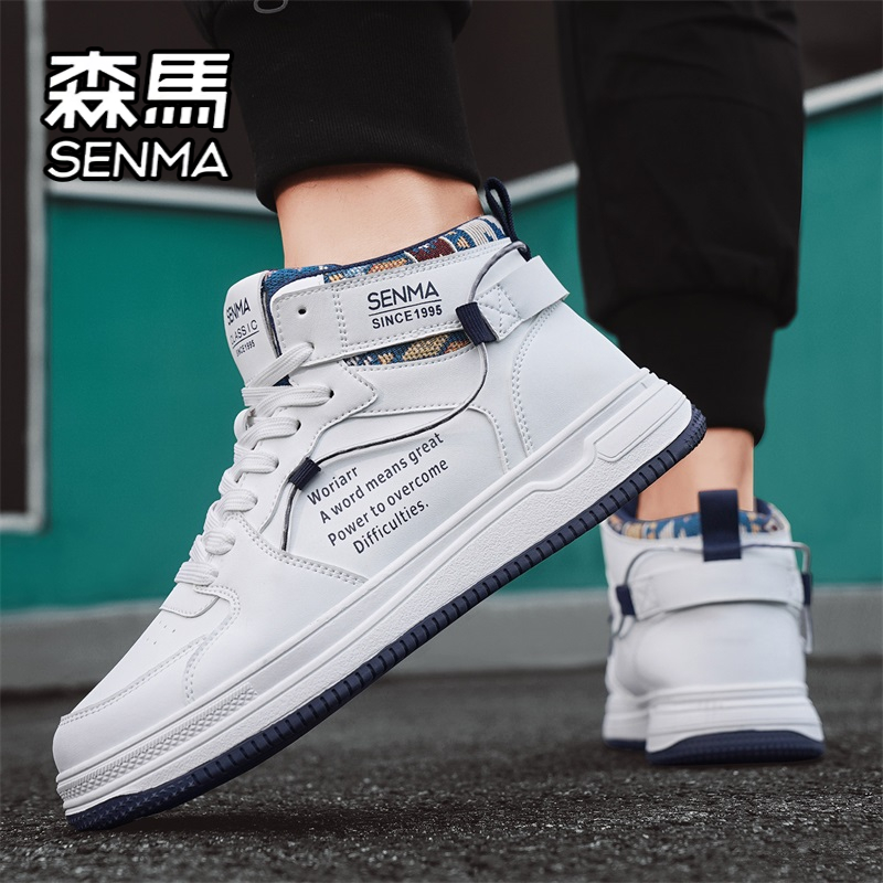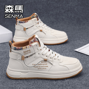 靴子 真皮防水厚底增高工装 森马马丁靴男秋季 高帮百搭休闲白色板鞋