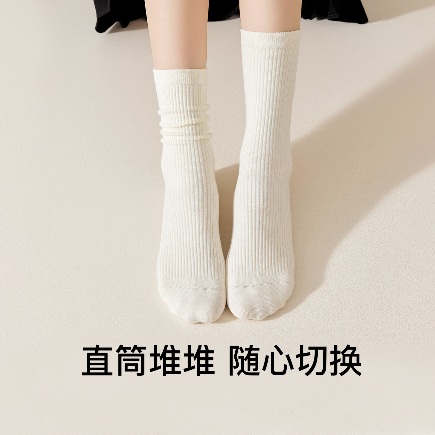 白色袜子女款 纯棉纱线中筒袜月子堆堆长袜抗菌防臭女士棉袜 秋冬季