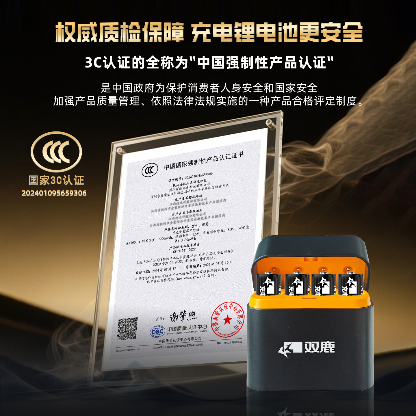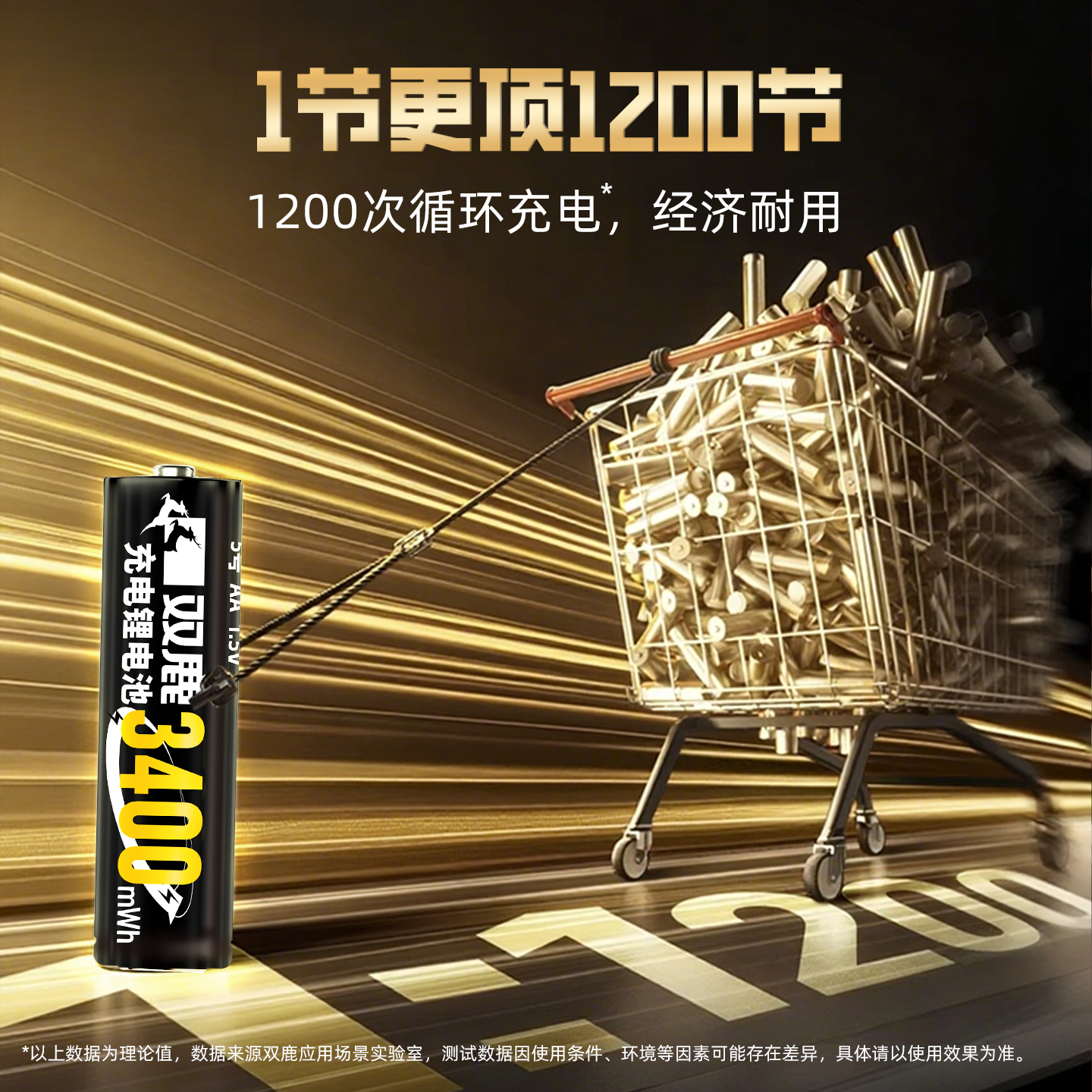 双鹿新能源5号充电电池正品 大容量适用遥控器玩具话筒无线鼠标键盘 1.5v锂电池3400mWh锂可充快充五号充电套装