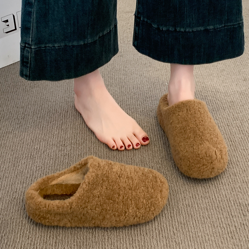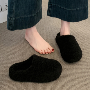 D1P1DAH5预 加毛厚底包头休闲鞋 方枪枪同款 百丽厚切吐司勃肯拖鞋