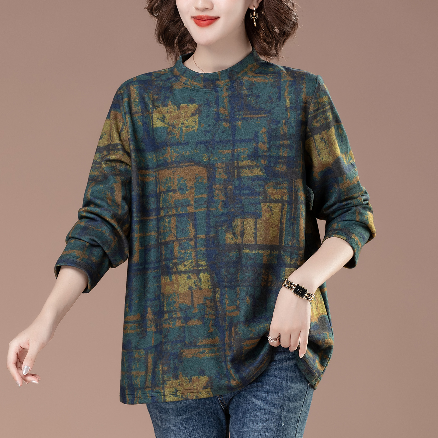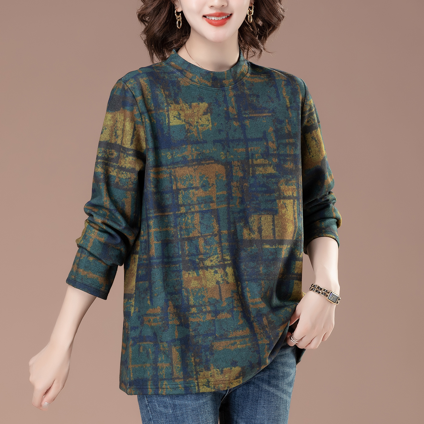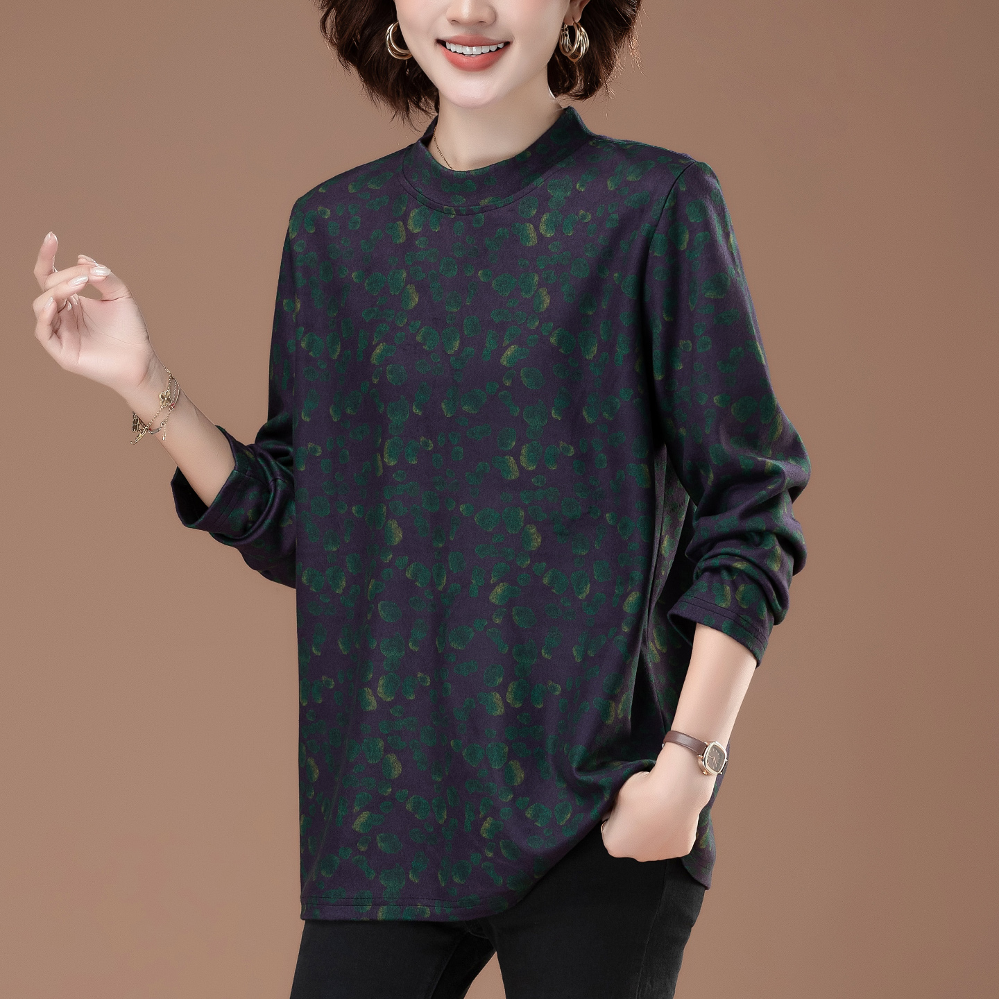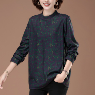 胖mm遮肚子中年妈妈可外穿秋衣碎花上衣 女大码 秋季 洋气内搭打底衫