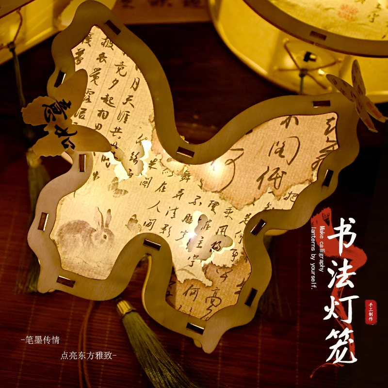 中秋节灯笼2025新款 幼儿园手工diy书法兔子花灯暖场活动手工材料