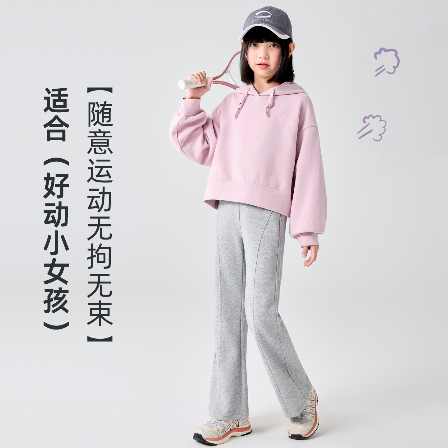 子女 超显腿长休闲百搭显瘦裤 JR真维斯灰色宽松卫裤 2025年春秋新款