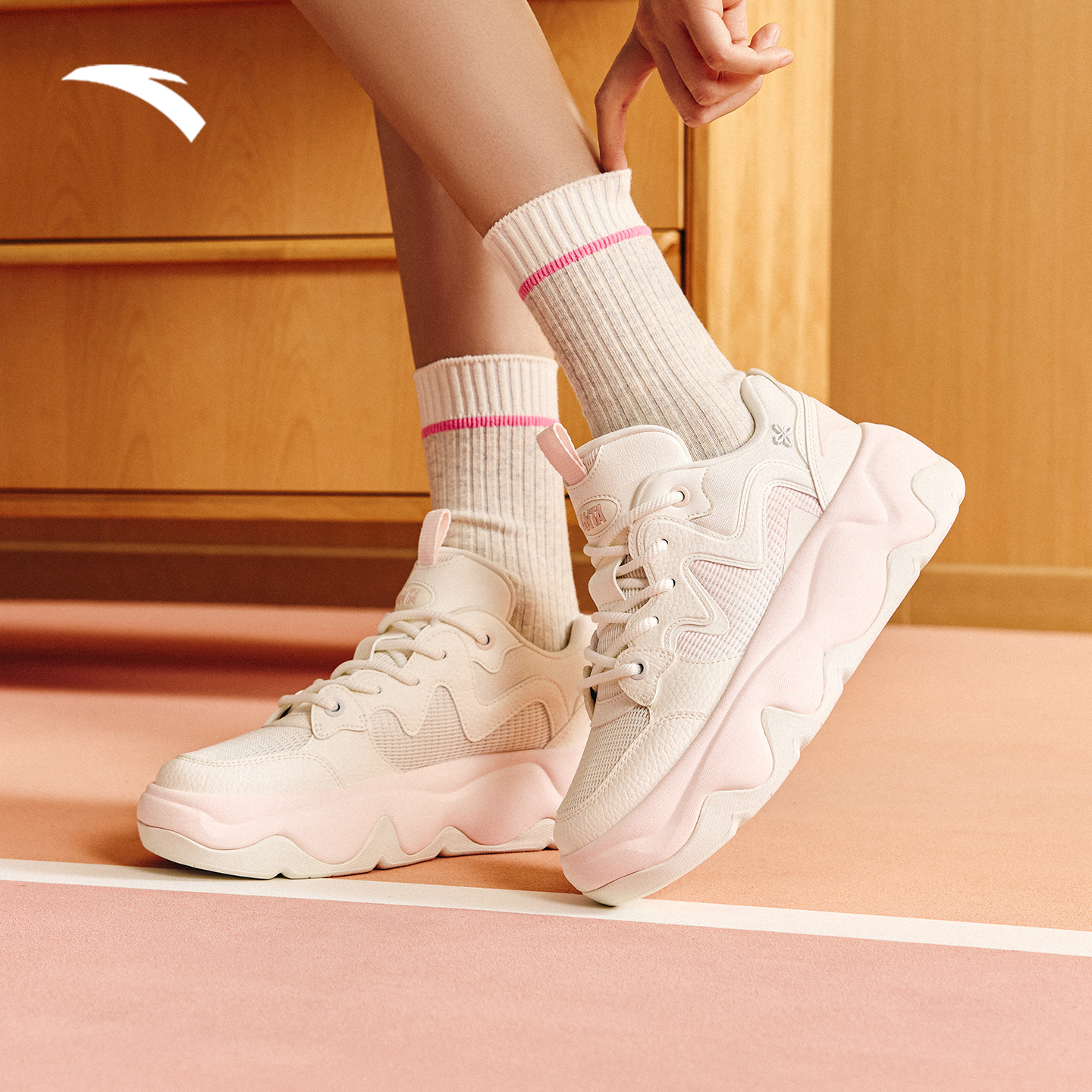 厚底增高休闲鞋 运动鞋 女2025秋季 百搭白色面包鞋 新款 安踏冰淇淋
