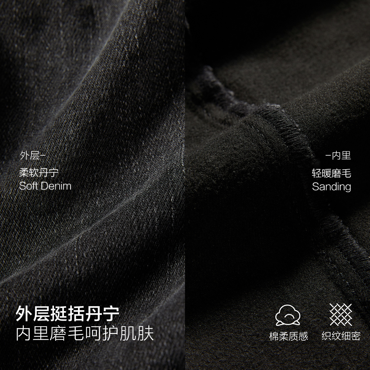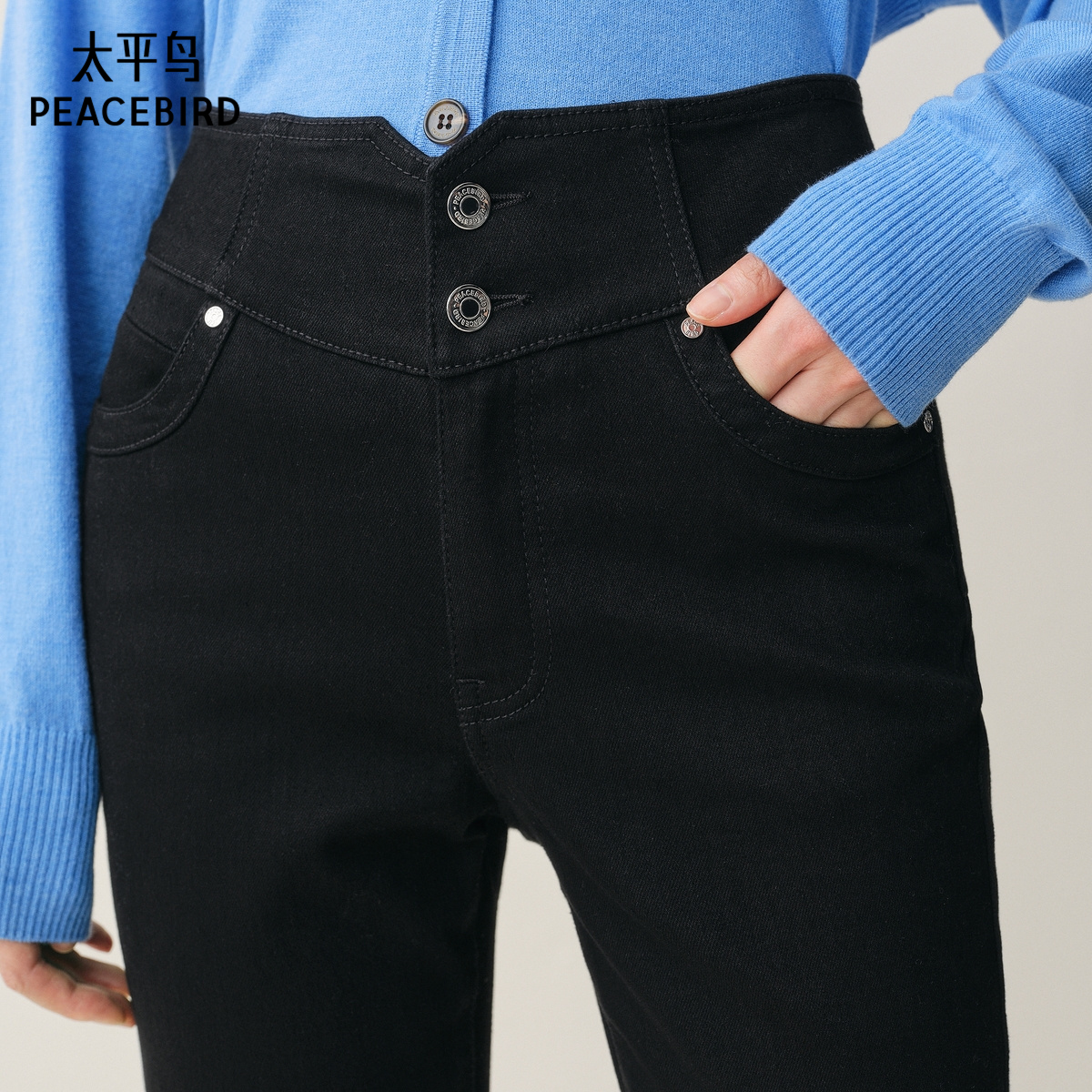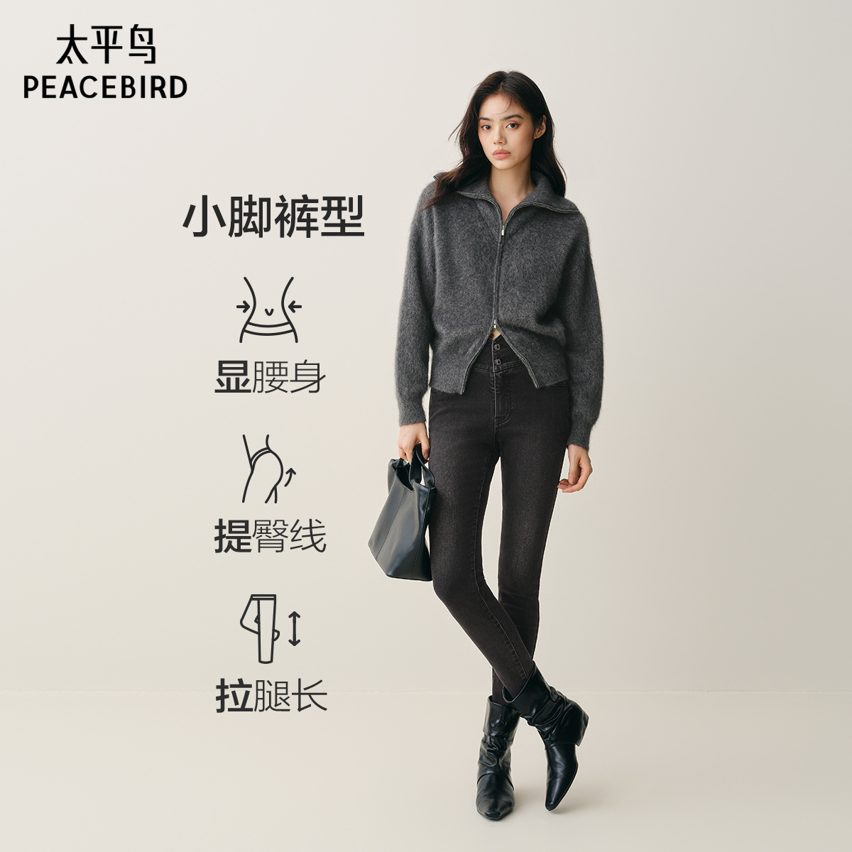 高弹发热磨毛牛仔铅笔裤 2025年秋冬新款 小脚牛仔裤 太平鸟高腰修身
