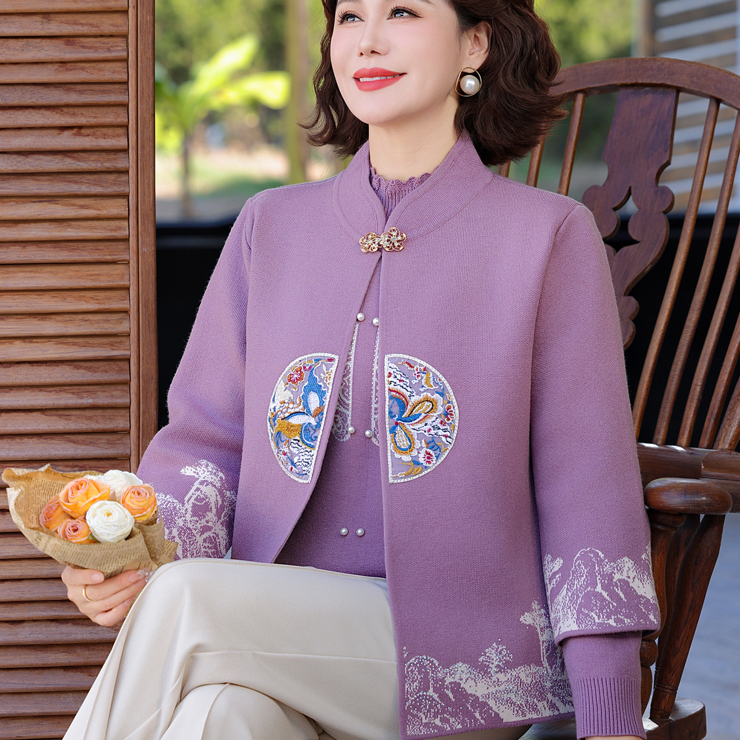 上衣中老年人女装 新中式 国风开衫 外套时尚 秋冬毛衣两件套 妈妈秋装