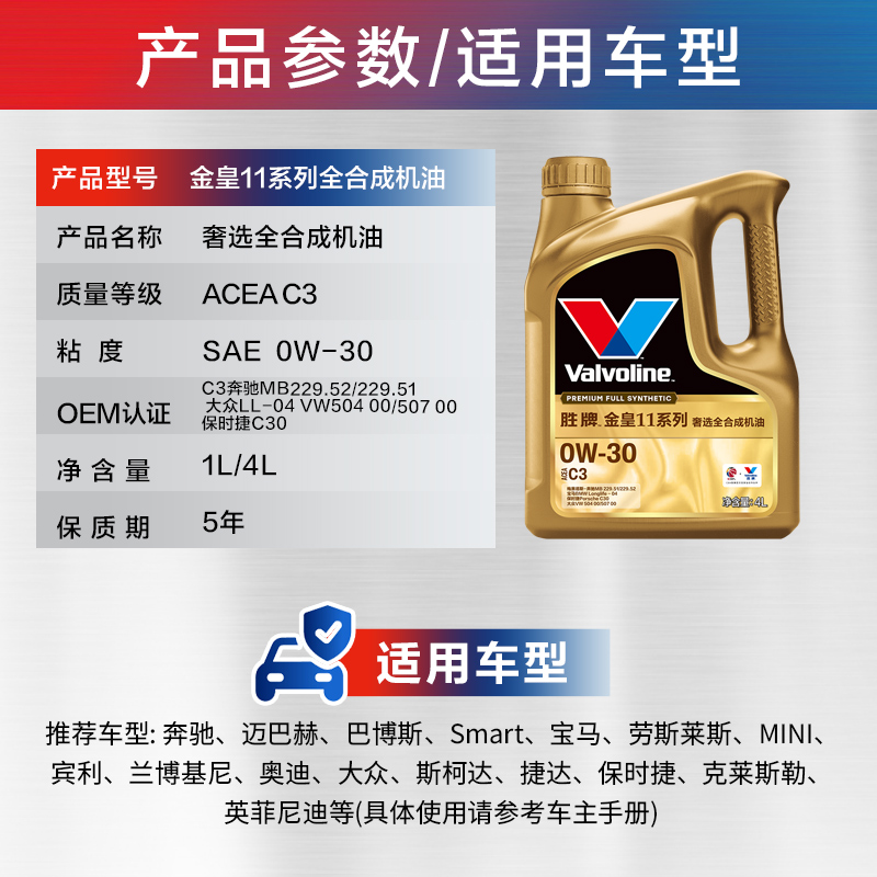 胜牌 金皇11奢选全合成机油发动机润滑油 ACEAC3 Valvoline