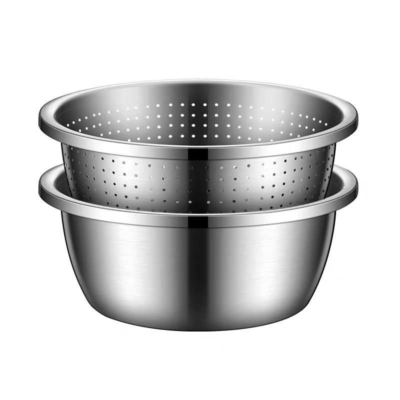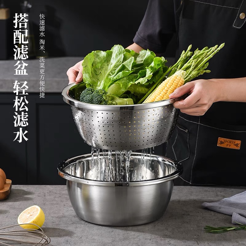 不锈钢洗菜盆沥水篮盆筛套装 304淘米沥水盆不锈钢盆滤水篮家用